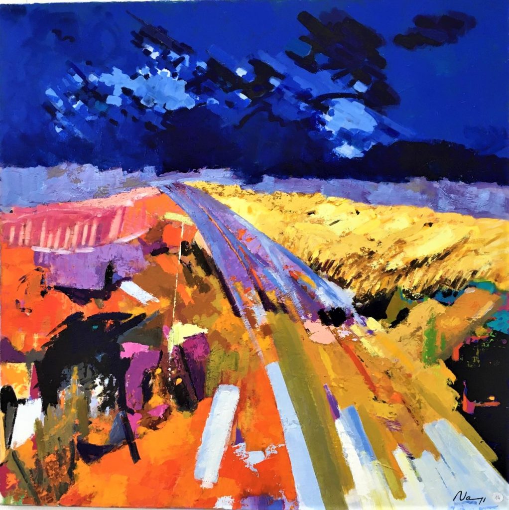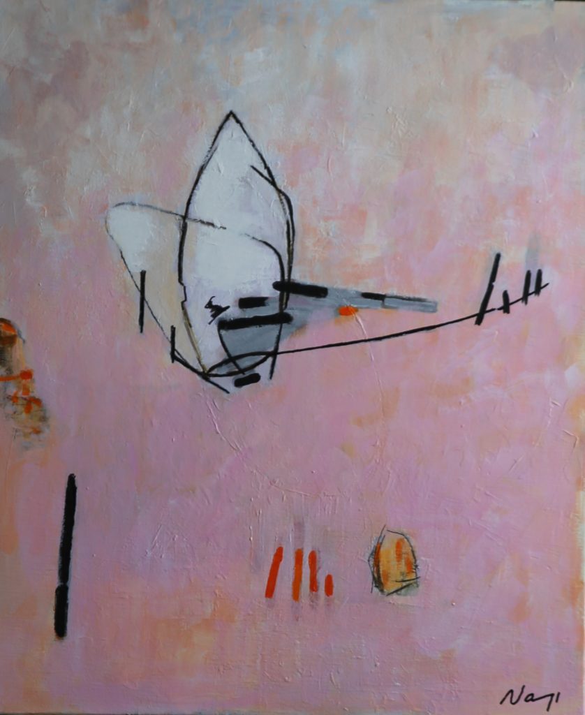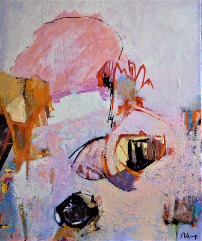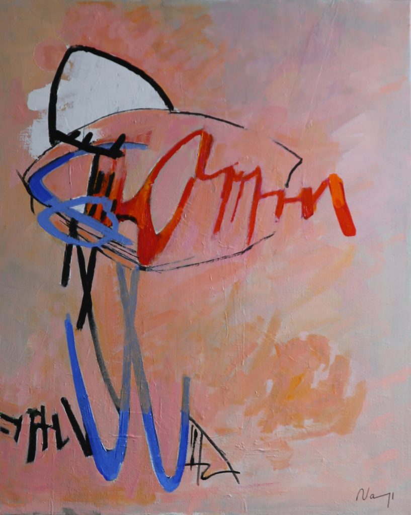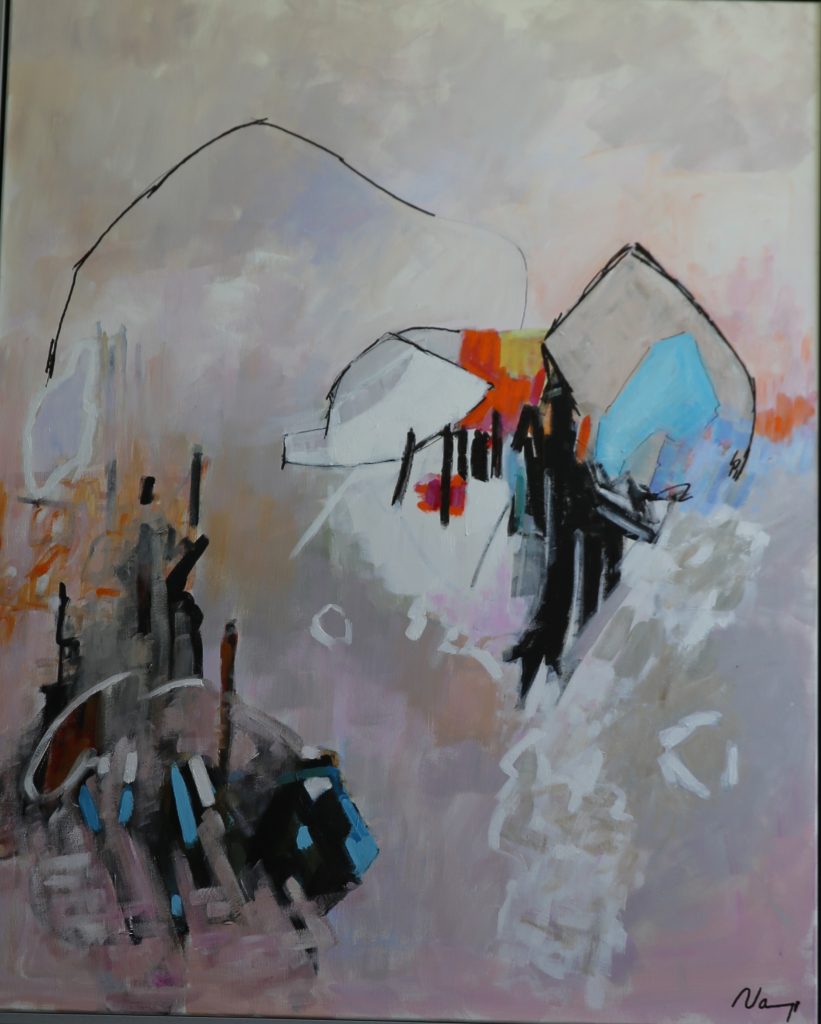 Ma nouvelle orientation vers la peinture abstraite résulte de toutes mes expériences passées. C’est l’aboutissement logique après une longue période de peinture figurative. Avec mes traits et mes couleurs, je voudrais ouvrir les portes à l’interrogation à l’émotion à l’empathie qui rapprocheraient les Hommes.